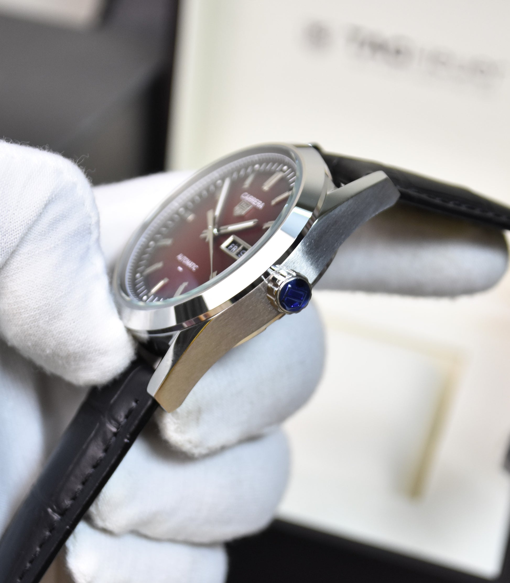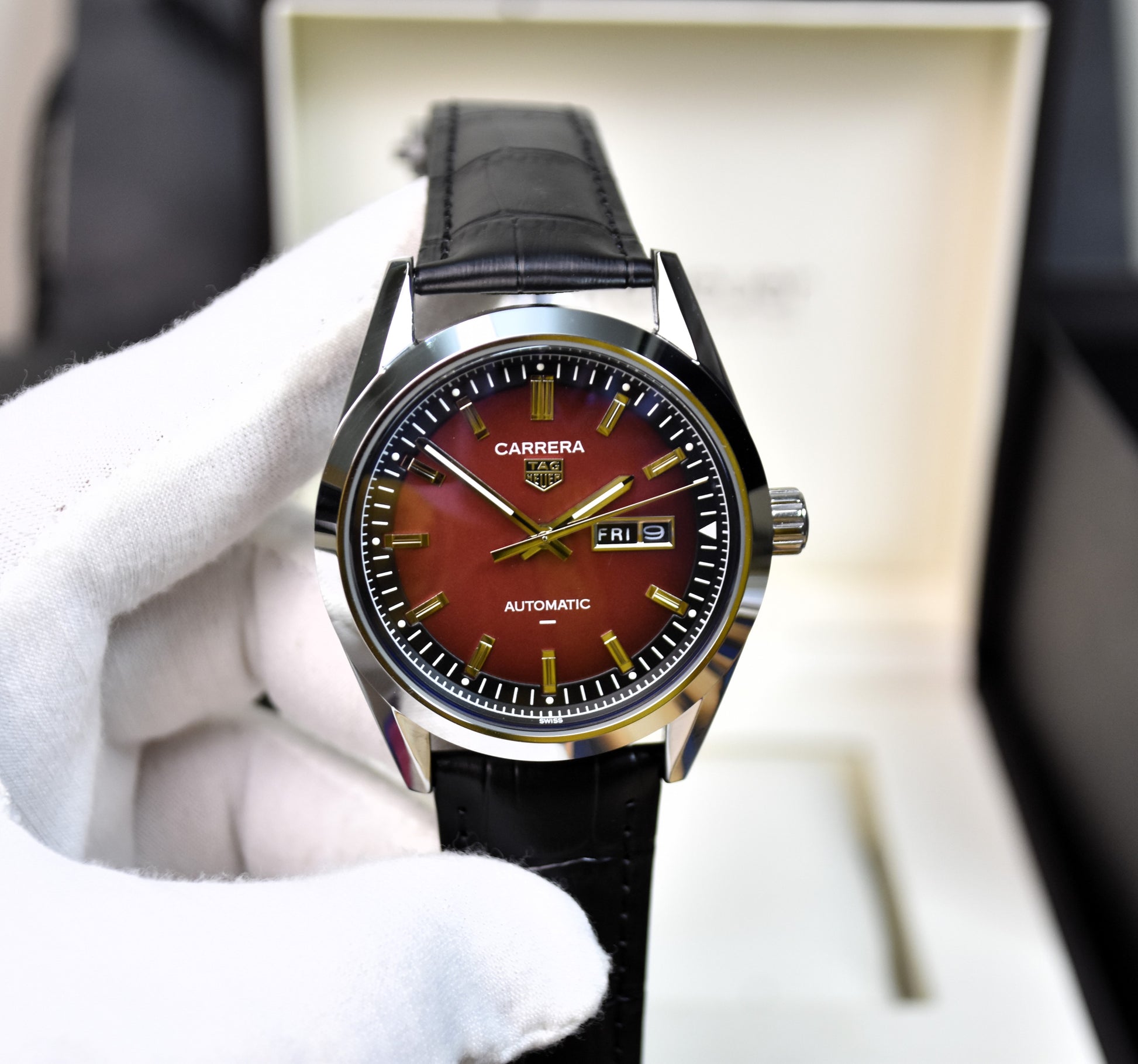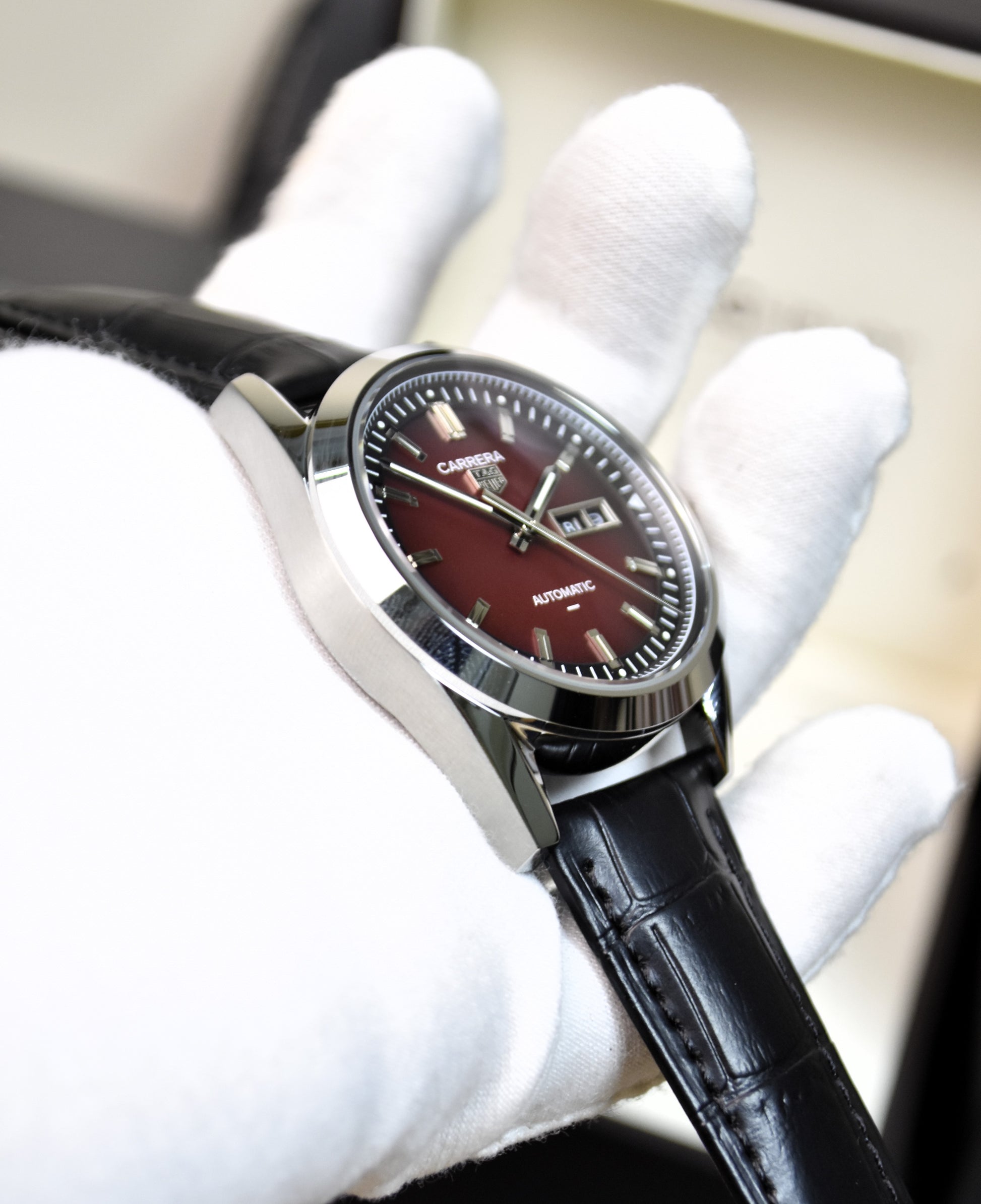 Auto Carrera Daydate Strap Silver Red Dial